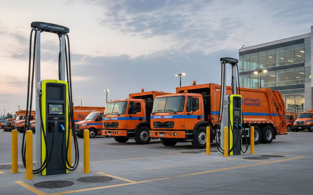 Parc d'autobus et station de recharge